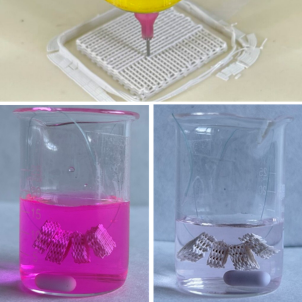 To accomplish those requirements, WaterGreenTreat project aims to develop photocatalysts based on metal oxides (ZnO/CuO) composites by additive manufacturing. In particular, macroporous structures with controlled microstructure and pore architecture will be fabricated by robocasting from commercial CuO and ZnO nanoparticles and also obtained by green synthesis. The printed structures will be consolidated by fast sintering process to prevent, as much as possible, grain growth and hence preserving their photocatalytic activity. In this way, environmental impact associated to the manufacturing of these 3D metal oxide photocatalysts will be minimized by reducing energy consumption (fast sintering techniques require only 20-30% of the power used in conventional fabrication routes) and minimizing waste through the additive manufacturing process. The novel robocast photocatalysts are expected to be eco-friendly and to have good physical stability, photocatalytic activity and antioxidant properties. Besides, the use of these 3D printed photocatalysts based on metal oxide nanoparticles can avoid contamination of the treated water with metal ions that can be generated from the metal oxide when they are used in powder form.